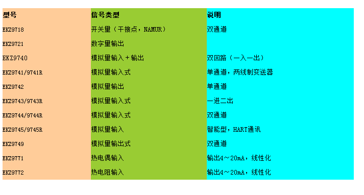 3.現(xiàn)共有十一種共十六個(gè)規(guī)格的隔離柵產(chǎn)品可以配接各種開(kāi)關(guān),智能變送器以及執(zhí)行機(jī)構(gòu).配接熱電偶和熱電阻的隔離柵在儀表內(nèi)部自帶線性化功能.
